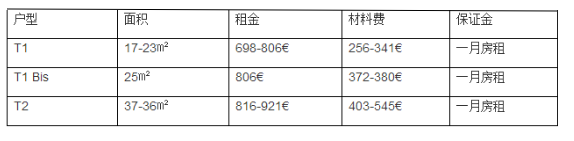 免费服务:门禁、前台、成套日用品织物、自行车停放架、互联网